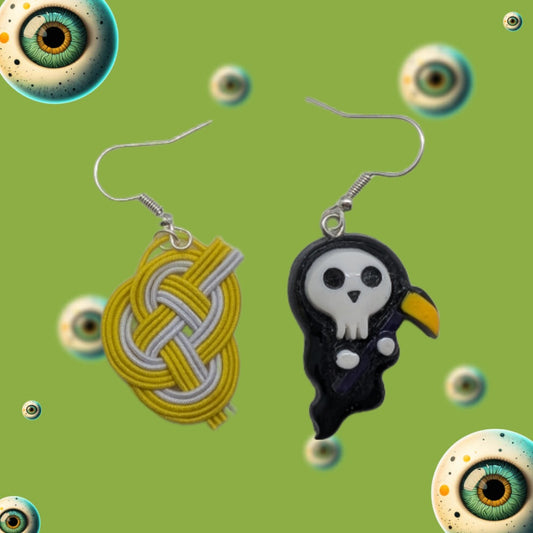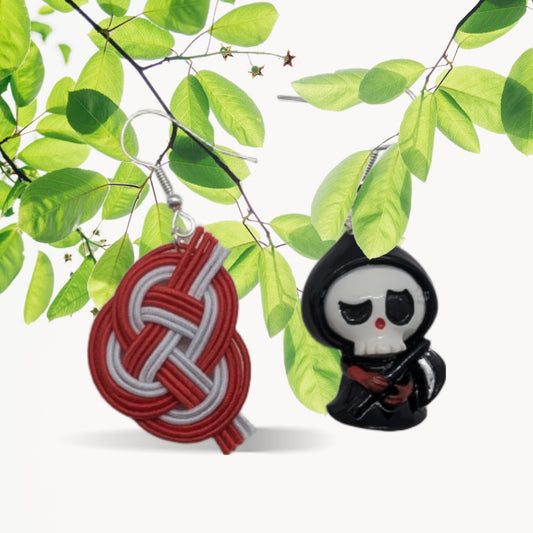 pendentif faucheuse avec faux jaune & nœud Awaji