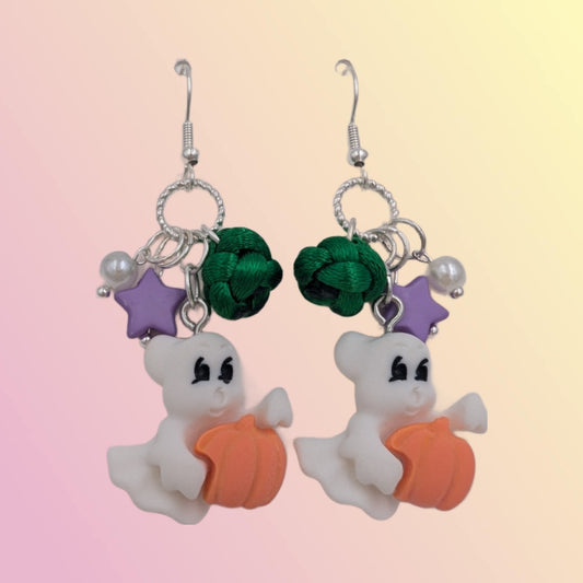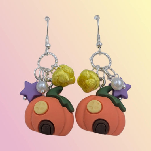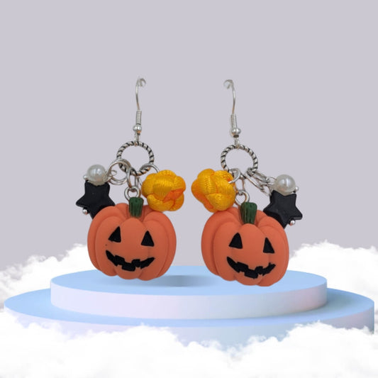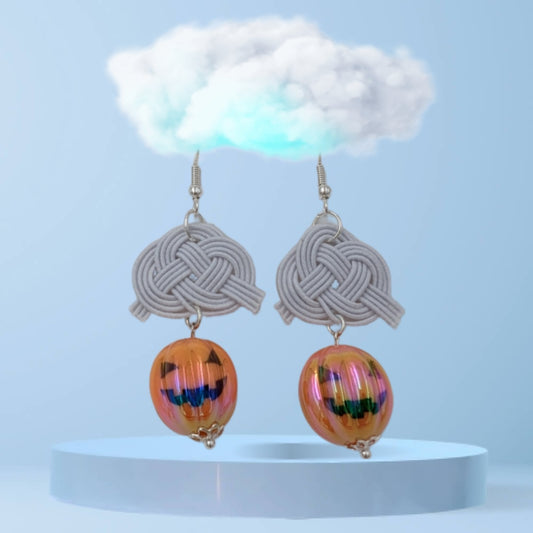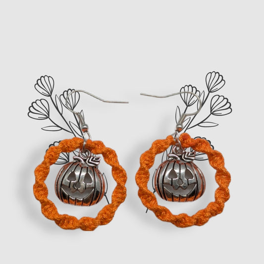 pendentif citrouille souriante en métal & nœud plat unidirectionnel